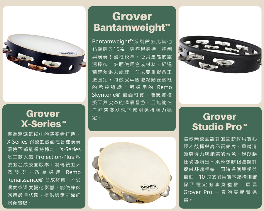 以輕量為主的Bantamweight™系列鈴鼓,相較於平常的Projection-Plus™系列,鼓框改窄,減輕了約15%(50-60g)的重量,拿在手上明顯有感,更容易抓握和操控,對於年齡較小或手掌偏小的打擊樂手相當友善。