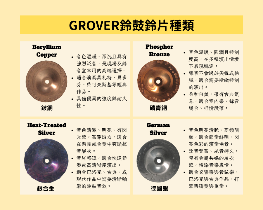 ➤ 鈴片:磷青銅片(Phosphor Bronze)