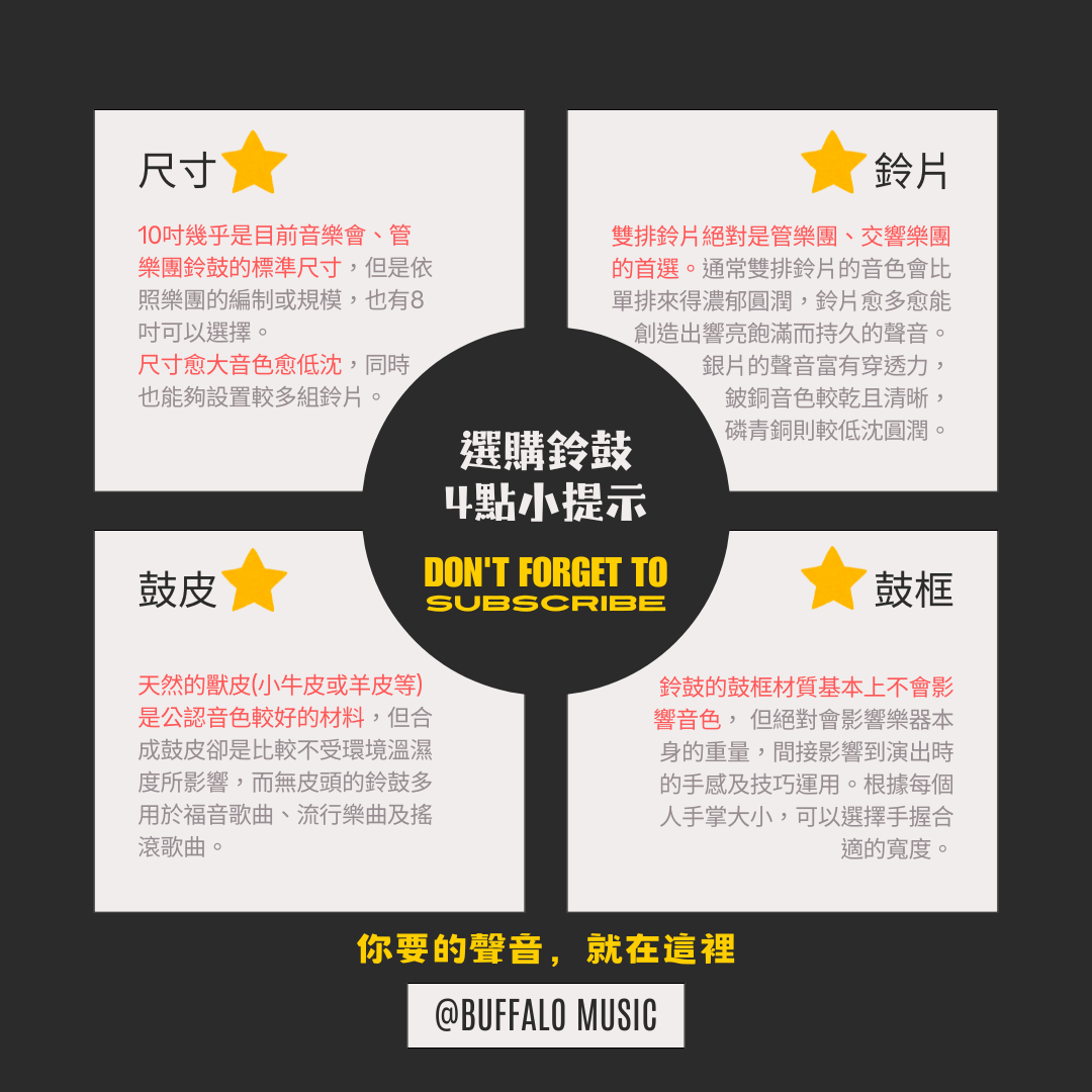 ➤ 規格:10″ / 獸皮鼓面 / 單排鈴片