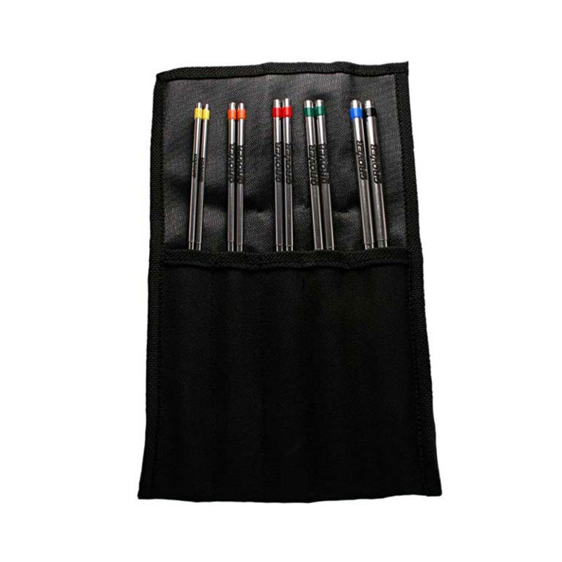 由六種不同粗細和重量組合而成的三角鐵棒小隊,鐵棒由不鏽鋼合金製成,可產生飽滿、豐富的音色,讓它們能夠將三角鐵的聲音潛力最大化的表現出來。