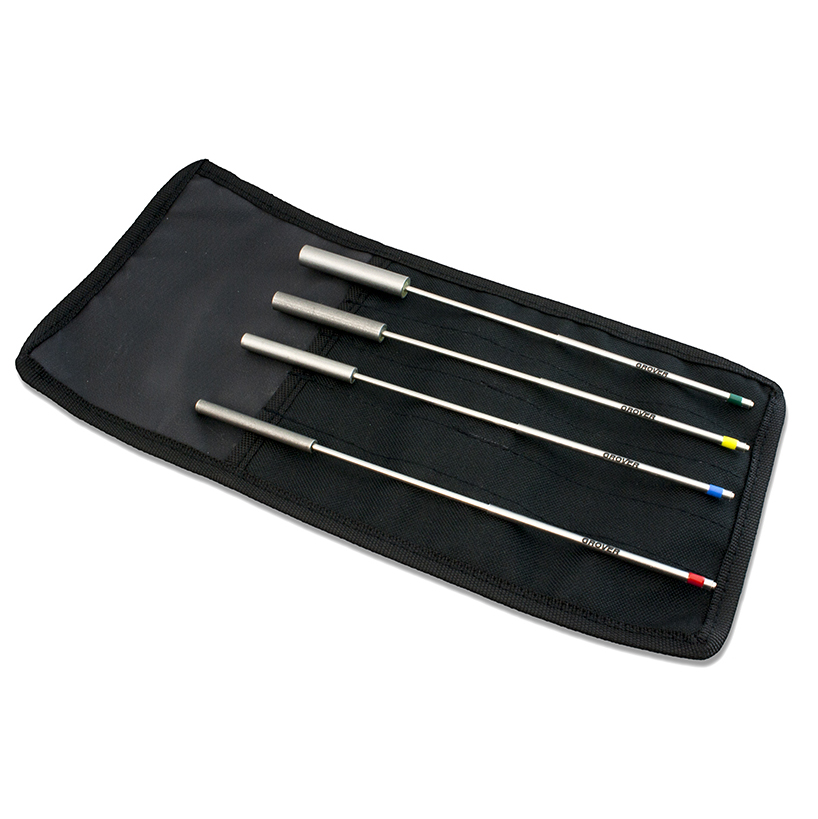 棒身上有塗層讓演奏者更好握,分別為1/4吋、5/16吋、3/8吋、7/16吋的管狀三角鐵棒。