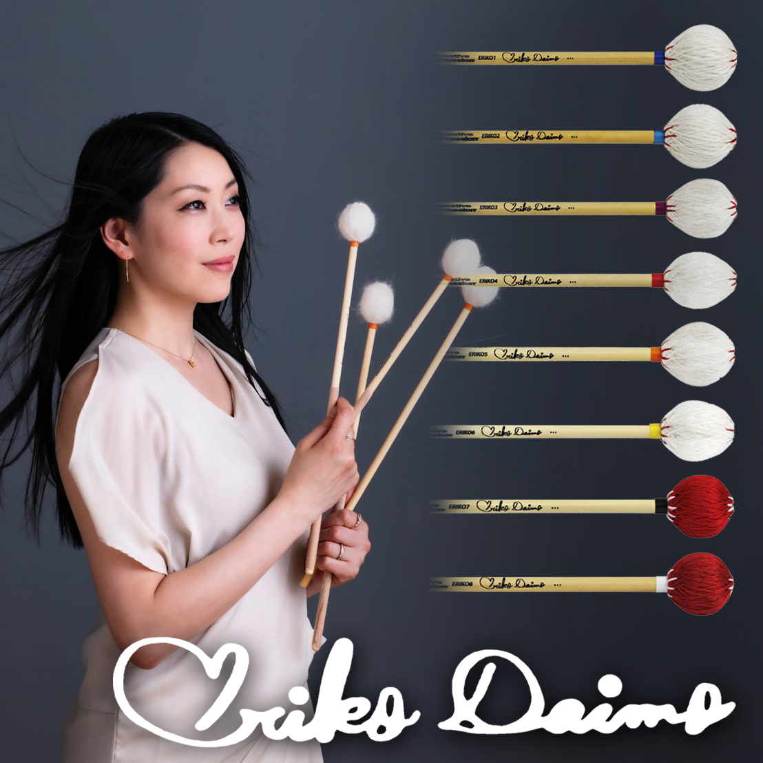Eriko Daimo簽名系列馬林巴琴槌提供了8種不同的硬度選擇,ERIKO1~6使用的是柔軟的混紡紗線,包裹於橡膠槌芯上,可以創造溫暖、圓潤的音色;而ERIKO7~8則是使用耐用的合成繩線,並且緊實的包裹在槌頭上,是專為清晰演奏而設計的型號。
