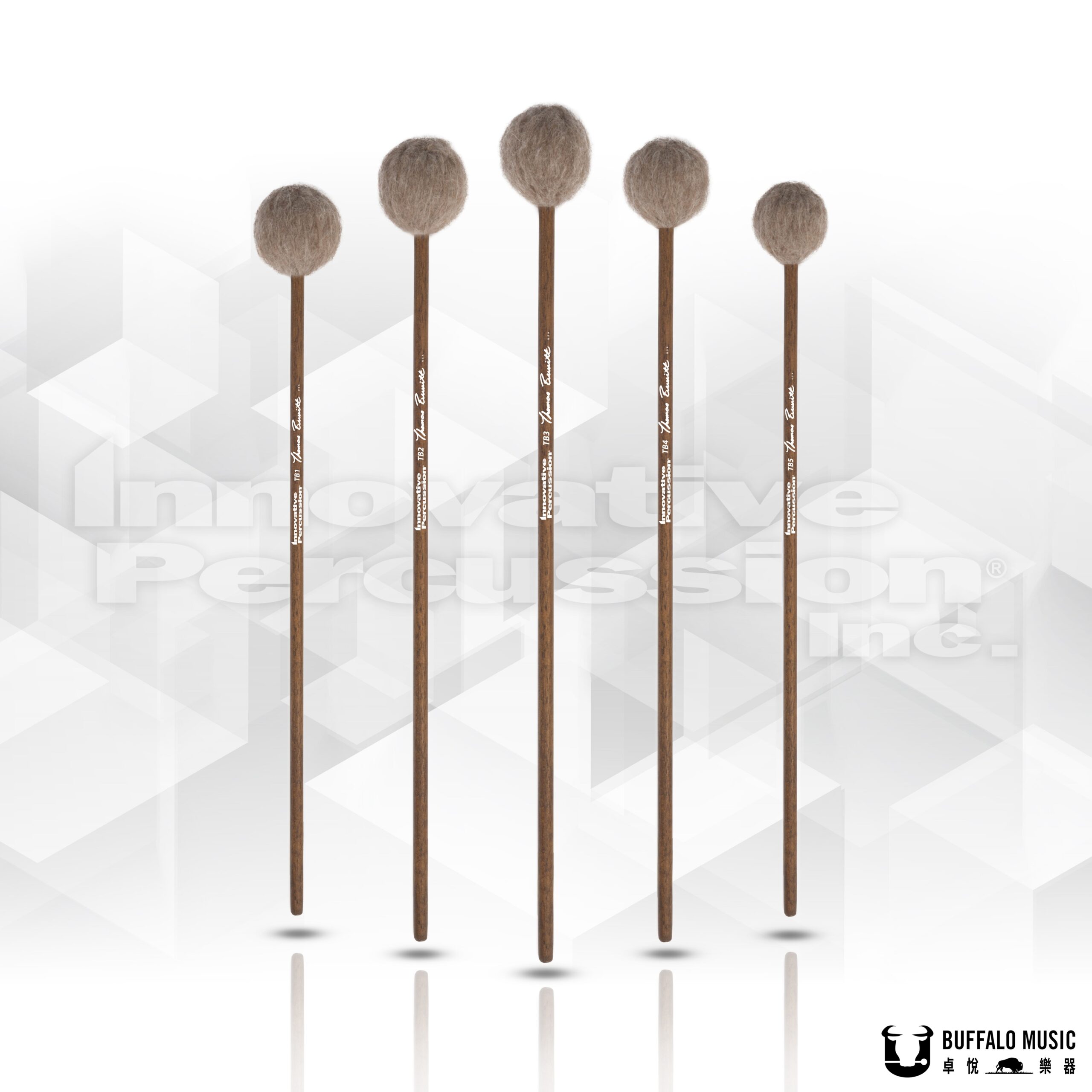 Thomas Burritt系列將其合成槌芯搭配在染了胡桃木色的樺木柄上,極為柔軟的紗線鬆散地包裹於槌頭,幾乎不會產生令人困擾的Attack(接觸音),音色柔和圓潤,即便是最硬的TB5,相較於一般的琴棒,也屬於偏軟的設定。