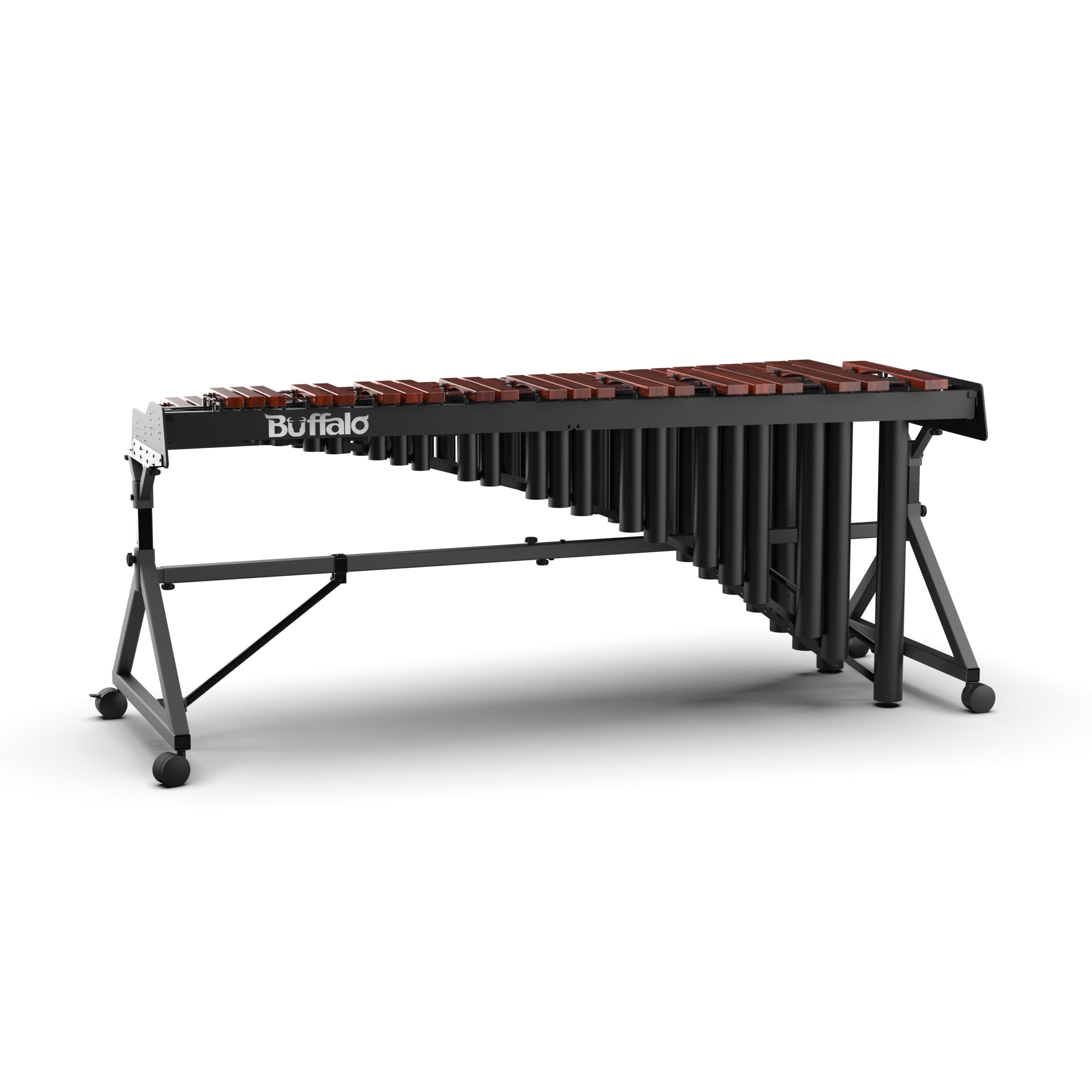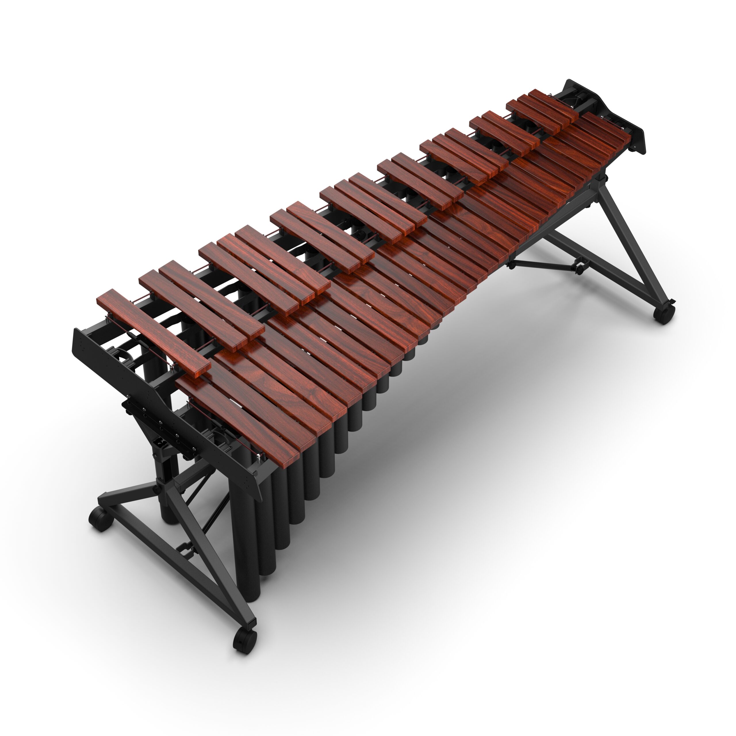 TENUTO系列的定位式高度調整系統(Positioned-lifting System)提供了6公分的高度調整範圍,以輕巧耐用的鋁合金桿取代了沉重的氣壓瓶,我們在木琴兩側支架的鋁桿上設置數個鎖點孔位,演奏家只需要將螺絲鬆開,調整至適合的高度之後,再將螺絲鎖進對應的鎖點孔位即可,對於日常練習和非頻繁調整高度的使用情況下,定位式高度調整系統提供了足夠的機能性。