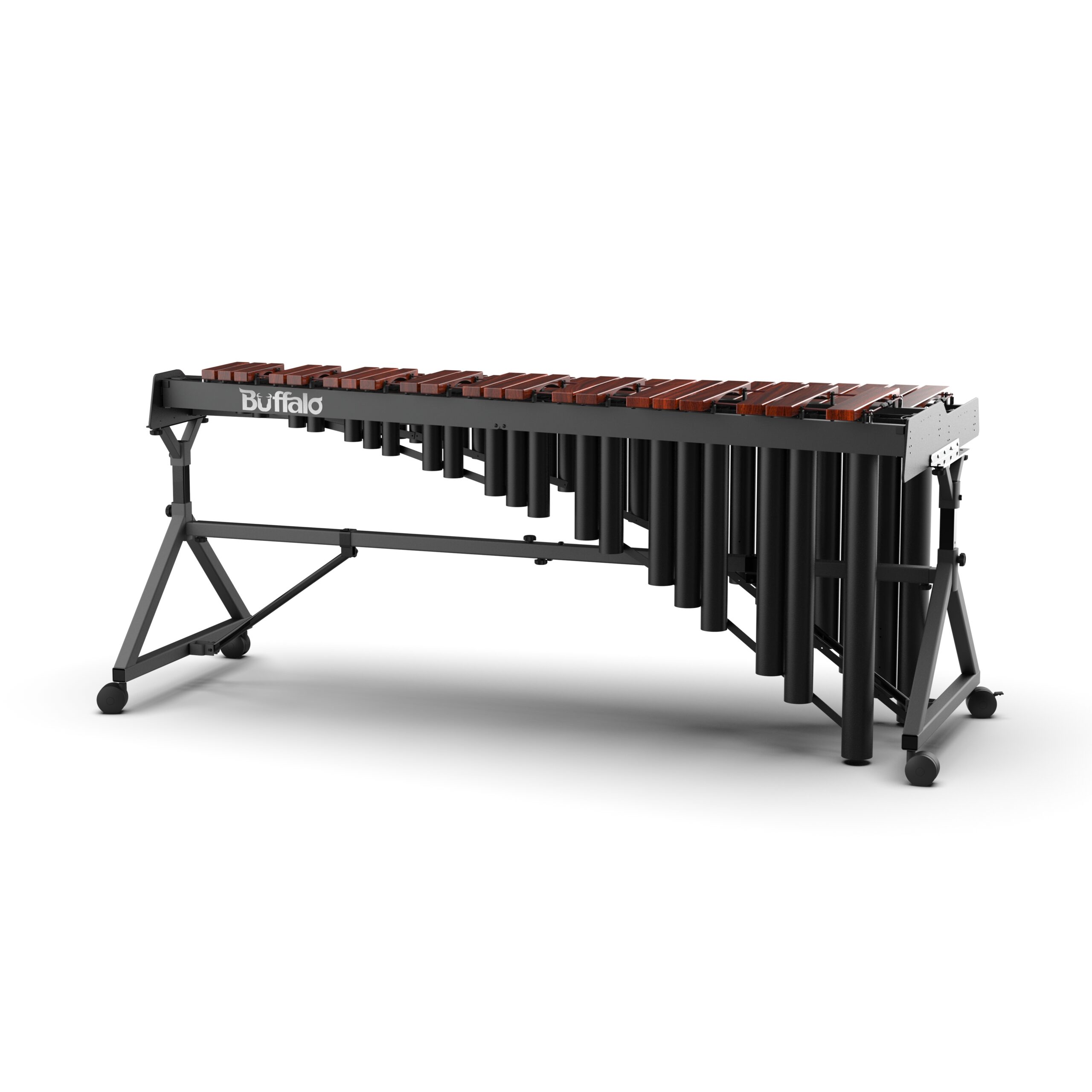 共鳴管結構採用的是對拆式設計,將鋁合金管子進行焊接與強化,再把共鳴管分成高音與低音兩組,僅需要使用螺絲將共鳴管進行組裝固定即可,大幅提升木琴在收納與搬運方面的機能性。