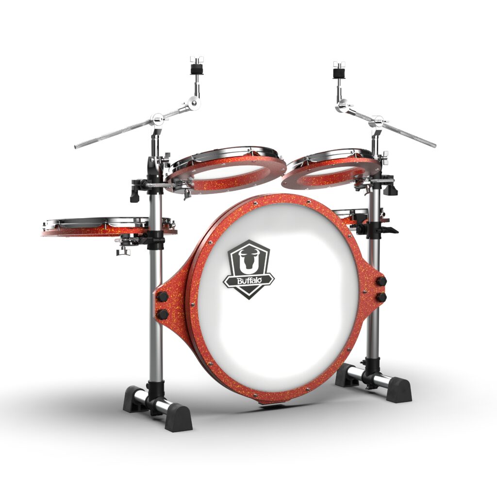 我們的產品還兼顧了有著經常性移動需求的鼓手們或街頭藝人(Buskers),設計了輕量、便攜、有折疊功能的鼓組,它們的巢式共鳴鼓腔可提供最大化的反射,且相較於傳統鼓組更不佔空間,機動性極高。